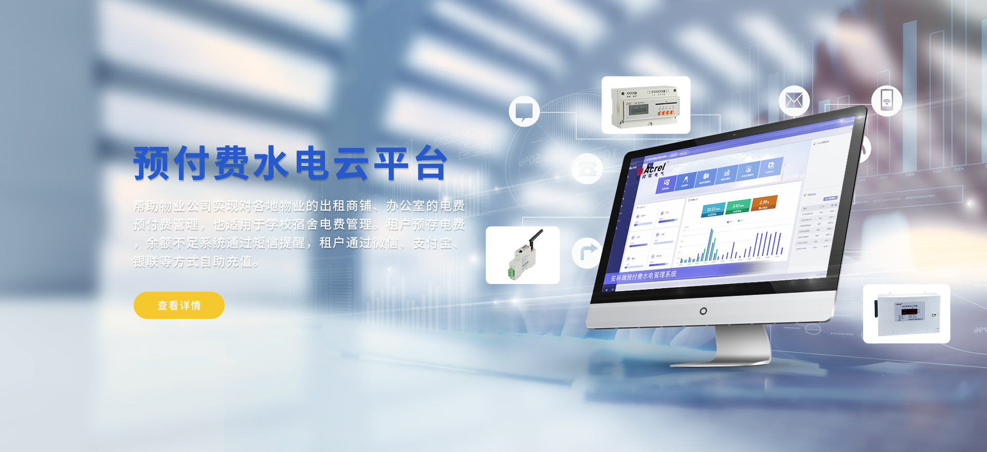 安科瑞提供的解決方案包括Acrel-EIoT能源物聯網云平臺、變電所運維云平臺、安全用電管理云平臺、環保用電監管云平臺智慧消防云平臺、能源管理云平臺、工業企業能源管控平臺、遠程預付費云平臺、餐飲油煙監管云平臺、電動汽車/電瓶車充電樁收費管理云平臺、電力監控/無線測溫系統、電能質量治理系統、電氣火災監控系統、消防設備電源監控系統、防火門監控系統應急照明和疏散指示系統、智能照明控制系統、醫用隔離電源絕緣監測系統等,幫助用戶實現能源智能化、可視化、精細化管理,提高用能效率和用能安全,為企業節能降耗和實現能源數字化建設提供數據服務。